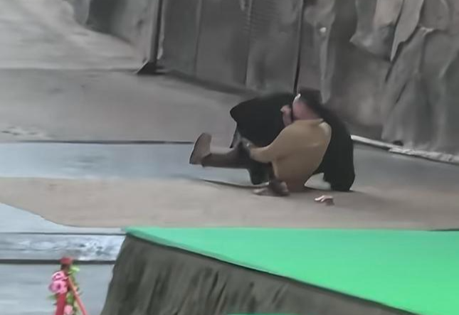 从网友发布的视频可以看到,当时,两只亚洲黑熊结束了滑板表演,正准备进行“开心三连跳”表演,前一只黑熊已经上台,后面正在候场的那只黑熊突然转身股配咖吧,与饲养员发生拉扯,并瞬间将饲养员推倒在地。旁边一位女性工作人员用手中的塑料凳敲打黑熊无果,又试图用手将其拉开。随后,又跑来三名工作人员。其间,黑熊一度被制服,但当被攻击的饲养员再度上前时,拉扯再次发生。最终,5名工作人员一起将黑熊拉到了后台。